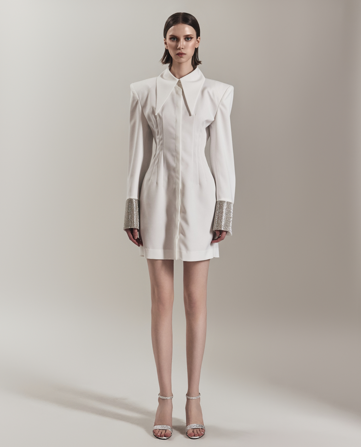 FABRIC _ POLYESTER 100% SIZE _ 1(S) / 2(M) SHOULDER _ 42 / 43 BUST _ 80 / 84 WAIST _ 70 / 74 SLEEVE _ 66 / 67 LENGTH _ 85 / 86